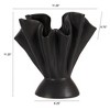 - This stunning vase is a one-of-a-kind piece of durable stoneware with a ruffled design and a black color that varies with the reactive glaze