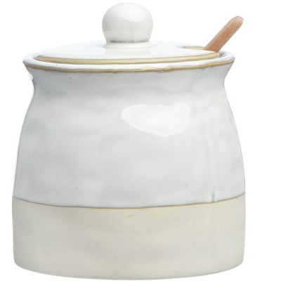 Storied Home Stoneware Sugar Pot with Lid and Wood Spoon