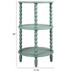 This Round Wood Lacquered Table with two shelves in a refreshing aqua finish adds a touch of charm to any room. Perfect for eclectic, farmhouse, or French country decor styles, this table can be used as a versatile piece in living rooms, bedrooms, or cozy corners. Made of high-quality pine wood, it comes partially assembled for easy setup. Measures 17.75 inches in diameter and 30 inches in height, making it a stylish and functional addition to the home. The aqua finish adds a pop of color that can brighten up any space, while the two shelves provide extra storage for books, plants, or decorative items. With its durable construction and classic design, this table is sure to be a timeless piece in the home for years to come.