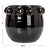 - A stylish and modern terracotta planter that features a shiny black glaze and over-sized raised dots for added texture and interest