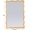 Elevate your decor with this stunning Wavy Rectangle Mirror, designed with a unique scalloped wooden frame. Standing at 36" in height, this mirror combines modern aesthetics with timeless craftsmanship, creating a perfect balance of form and function. The natural wood frame brings warmth and texture, while the wavy design adds a touch of playful elegance. Ideal for use in hallways, bedrooms, or living rooms, this mirror enhances any space by reflecting light and providing a stylish focal point.