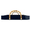 This Wood and Metal Tray in navy is a stylish homage to coastal living. Its rectangular silhouette and bamboo construction are accented with metal details, creating a piece that's both functional and decorative. Measures 21.5 inches in length and 14.5 inches in width, offering ample space for a variety of uses. The tray's generous size makes it perfect for serving guests at the seaside retreat or as a statement piece in any room that celebrates the coastal lifestyle. With its blend of natural materials and nautical color, it's a tray that serves up sophistication along with any favorite treats.
