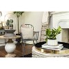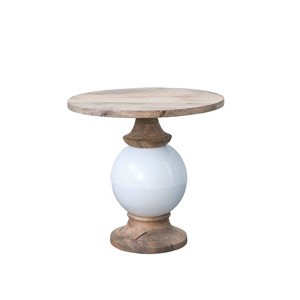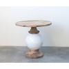 - Add a touch of natural beauty to any space with this round mango wood and metal table, featuring a white and brown finish with a lightly textured, light tone.