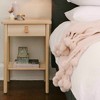 Featuring a subtle blush color and pom pom trim detail, this throw is an instant, easy update to any home. This perfectly weighted piece adds texture and attracts the eye with a dreamy hue and playful details. While cozy and functional, this throw also looks great draped over a bed, sofa, or chair as a soft, decorative piece.