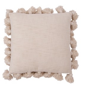 - A cozy and chic pillow with a woven cotton slub cover and tassels in a cream color