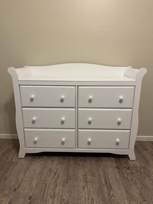 - NURSERY AND KIDS BEDROOM DRESSER: Traditional sleigh design to match with any classic style nursery or kids bedroom; Dresser for bedroom with 6 drawers