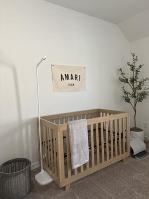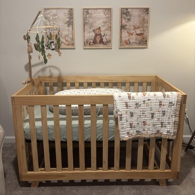 Beautiful color and perfect for our woodland creature theme! As my son got older and has started rolling, he did get his arm stuck between the rails, so we purchased mesh crib liners.