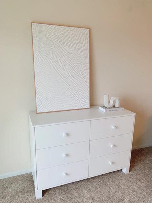 Introducing the Storkcraft California 6 Drawer Dresser. Organize your nursery or kids' bedroom in style with our modern, minimalist, stylish, and spacious California 6 Drawer Dresser. With its clean lines, stylish “block” feet, and sturdy construction, the California is sure to add a pop of style (and storage convenience) to your nursery or kids bedroom. For a worry-free assembly experience, the California’s drawer tracks are pre-installed to ensure a smooth-gliding drawer experience.