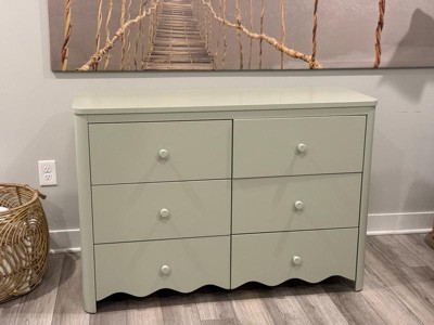 [This review was collected as part of a promotion.] Took about 2 hours to put together with the help of my husband but was pretty easy. Design is perfect for my little girls room with the scalloped bottom drawers. The sage green color is very light a subtle. Has 6 drawers with decent space inside. Now sure the longevity of the materials it’s not solid wood.