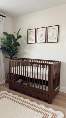 Absolutely love this crib! The design is beautiful, the wood tone is stunning in person, and it feels incredibly sturdy. It instantly elevated the whole nursery. I love that there’s storage on the bottom and the scalloped edges. Highly recommend!