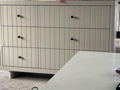 [This review was collected as part of a promotion.] STUNNING DRESSER! It’s all in the details… With full disclosure, however this is my honest review. This dresser is such good quality and so stylish. I love the asymmetrical drawers (making it perfect for an adult bedroom after the nursery stage) and the colour of the Frosted Oat (somewhere in between beige and light grey). The black metal knobs are so beautiful, as well. Such a nice touch, beautiful color.