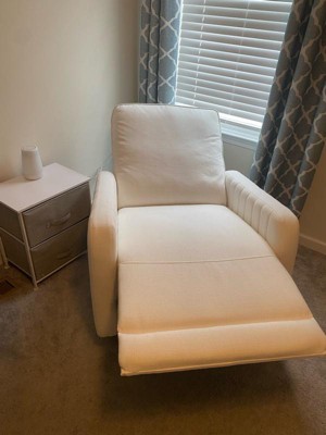 [This review was collected as part of a promotion.] It’s a very comfortable recliner. Assembly was extremely easy .Its perfect for moms and even after im done breastfeeding I knew it will be good for when my son is older and even just for my lounging. Very comfortable chair that I can use long term. Its color is pure white and fabric seems very durable and soft .