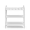 Bring your dream nursery to life with the Storkcraft Pasadena Changing Table, the perfect addition to any nursery. With its clean lines, raised “European style” side panels, and modern design, the Pasadena includes a water-resistant changing pad with safety strap and features generous storage shelves designed to simplify your nursery organization. While it perfectly complements the Pasadena 3-In-1 Convertible Crib, its versatile design makes it an ideal choice for pairing with cribs of all brands and styles, allowing you to create a harmonious nursery for your little one.