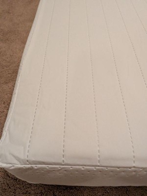 [This review was collected as part of a promotion.] This baby crib mattress is super durable and sound construction. It’s exactly as described. It comes with a nice cover. I would definitely recommend buying a mattress protector separately.