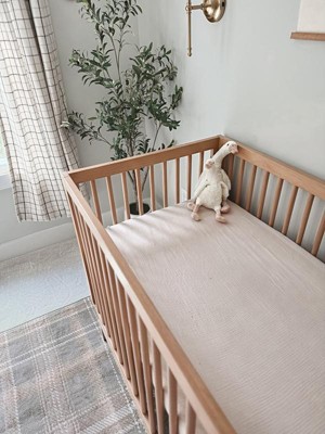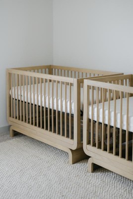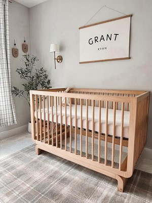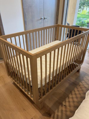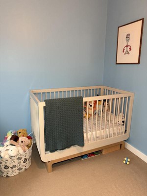[This review was collected as part of a promotion.] We upgraded our little one from a mini crib to this crib and absolutely love it. The quality is impeccable as always. We love the simplicity and modern feel to it. The frosted oat color is perfection. We also love that it comes with the toddler guard rail which a lot of other convertible cribs don’t include. Overall very happy!