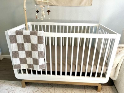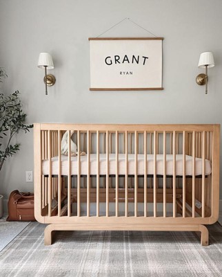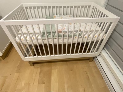 [This review was collected as part of a promotion.] This crib has the most gorgeous design! The white and wood matches so well with everything in our nursery. The setup was straightforward and didn’t take long at all. It feels so sturdy too! I love that this crib will grow with our baby into his toddler years and the quality will definitely last. It was very easy to adjust the height of where the mattress sits which will be convenient as he gets a bit older. We are obsessed with the look of this crib and couldn’t recommend it enough!!