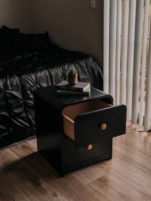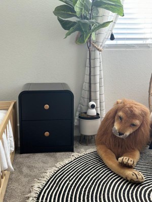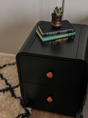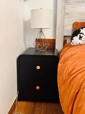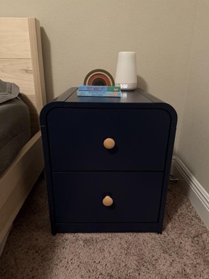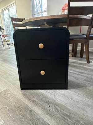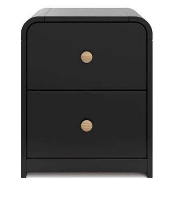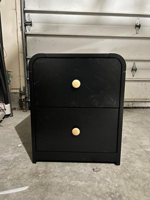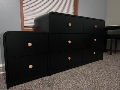 As soon as I saw this nightstand/dresser, I knew that I had to have it! The unique rounded corners just screamed at me by me!! So let me start off by saying that the wood itself was thick and actual wood. The black and oak color combination makes it stand out. It did take me about 25 minutes to put together, and the instructions were clear. It is a perfect size for a children’s room, And the drawers glide out easily. I’m totally digging the modern clean design .I’m super happy with it💖💖💖💖