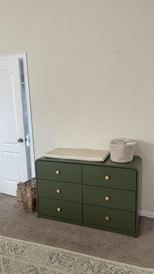 What can I say? I’m in love! 💖 The design is so adorable—clean lines and the deep green color that make it feel cozy yet modern. Those six spacious drawers are amazing for organizing baby clothes or toys, and they glide open smoothly! 🛌✨ Plus, it’s super sturdy, which is a huge bonus. Assembly was easy, and it feels like high quality materials which is very important to me. I'm happy with my purchase!