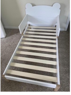 [This review was collected as part of a promotion.] This is probably the sturdiest toddler bed I’ve ever assembled! Great construction solid wood and sweet design. I love the teddy bear ears and the protection panels to prevent rolling off. My daughter absolutely loves it and I can’t wait for her to go to bed tonight and give it a real try.