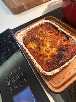 Lord, never microwave these meals! 20-30% of the meal wasted. Burnt to crisp around the edges and bottom. Could barely taste the cheese or meat in the dish. It's bad when your family has to cut the dish with steak knives to get the slices out and then continue to use the steak knives to cut out the burnt areas. Thank goodness for DIY side dishes. 960mg of sodium too (well, at least we saved some of those from the burnt areas).
