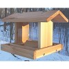 5-pound capacity mixed seed hanging feeder with chain. This is the best starter feeder in the industry, a big seed diverter with 4 perching rails (outside rail often called cardinal rails). 12-1/2-inch w by 10-inch h by 15-inch. Stovall products feature all cedar construction, stainless steel and dichromate plated screws, washers, hooks and chains, hand sanded, assembled with screws, and many products coated with wood protector which accents the wood grain and the natural warmth of cedar.