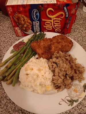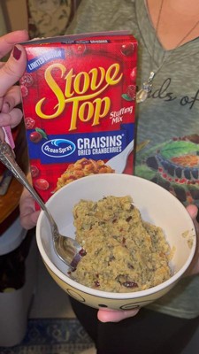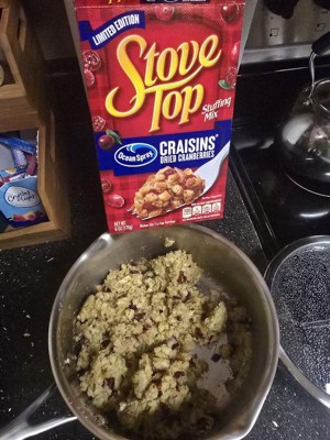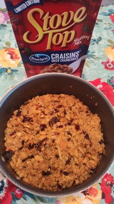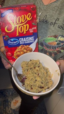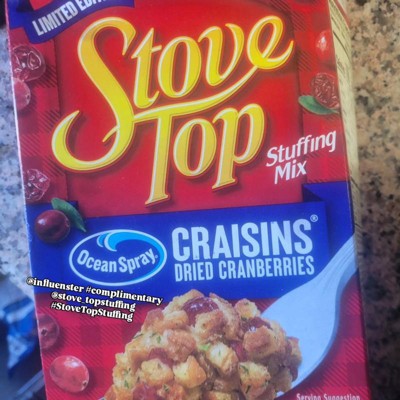[This review was collected as part of a promotion.] Stove top ocean spray spray cranberry stuffing wow what can I say? Absolutely brilliant! Well, first let me say my first thought was with this work together. I've always loved eating the stuffing but now they've mixed it with cranberries. Awesome the cranberries just add the right amount of flavor for those who don't like food with a lot of salt the balance is perfect. This is not just something I would pick up for a special occasion or a holiday such as Thanksgiving, this is a every day every week type of side that I would put on my plate with anything my compliments to stove top. This is a win-win and also something that I would definitely refer to anyone!