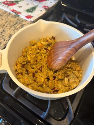 [This review was collected as part of a promotion.] The actual stuffing itself was good except for the cranberries and the flavor they leave behind when cooked. I don’t care for cranberry but this definitely is festive for the holiday season!