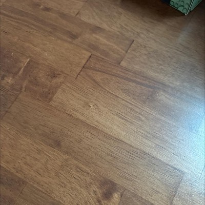 A: Hi Ari, This table is made from hardwood with a cherry finish. It’s designed for long-lasting durability and has the same appearance and sturdiness as solid wood. The table also comes with a 5-year warranty when registered. Thanks so much for bringing this to our attention — we really appreciate it!
