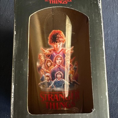Show your love for the final season of Stranger Things with this exclusive 16 oz. plastic tumbler. Featuring a vibrant, full-color wrap-around design, this tumbler showcases the main cast of characters on one side, including Eleven, Mike, Dustin, Lucas, Will, Max, and the rest of the gang.