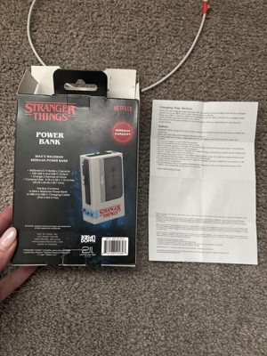 This Stranger Things power bank is awesome. It is 4,000 mah and can charge my phone a few times before needing to be recharged. It charges my phone really fast and stays cool while using. It has held up great. I use it every day and it still looks and works like brand new. I love the design, it looks like a cassette. It has a regular usb-a and a usb-c connection. It is small and can fit right in your pocket or cup holder in your car. This is the perfect portable charger.