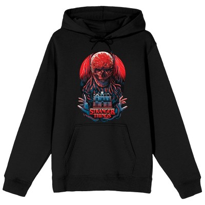 Stranger Things Vecna & Haunted House Adult Black Long Sleeve Hooded Sweatshirt-Small