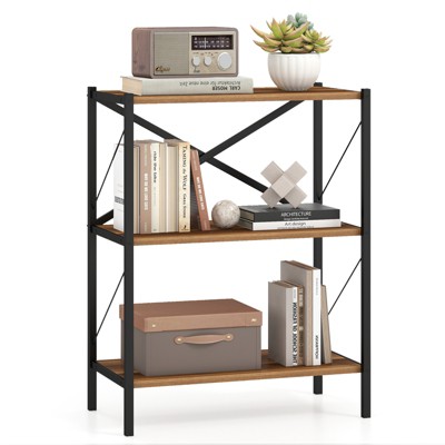 Stratford 36" 3 Shelf Folding Bookcase: Flora Home, Stained Wood, Steel Hardware, Anti-Tip