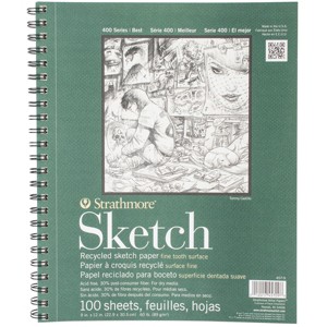 STRATHMORE-Recycled Spiral Sketch Book. A general purpose, medium weight sketch paper intended for experimentation or perfecting techniques. This package contains one 12x9 inch side spiral-bound sketch book with 100 sheets of 60lb acid free, lightly textured paper. Acid free and made of 30% post-consumer waste fiber. Made in USA.
