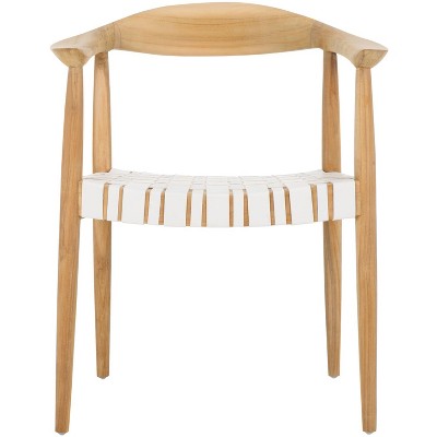 Stratton Boucle Fabric and Wood Armchair White/Walnut Brown - Baxton Studio
