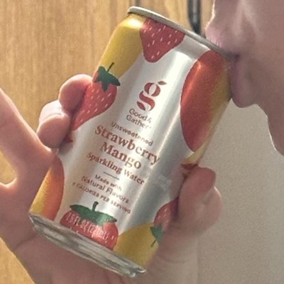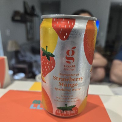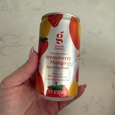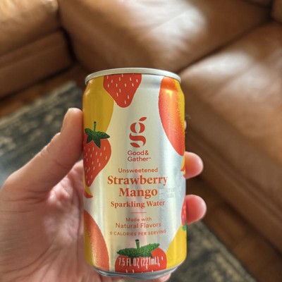 Quench your thirst with this 10-Pack of 7.5-Fluid-Ounce Strawberry Mango naturally flavored with other natural flavors Sparkling Waters from Good & Gather™. This pack of 10 sparkling waters features a refreshing combination of strawberry and mango flavors. Plus, each 7.5-fluid-ounce can has no calories per serving for an unsweetened sparkling drink you'll feel great about reaching for.