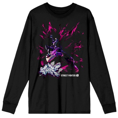 Street Fighter VI Juri Graffiti Name Crew Neck Long Sleeve Black Adult Tee-Large