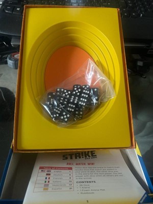 [This review was collected as part of a promotion.] The Strike dice game was very simple and easy to learn. There isn’t t much to it though - just the dice & the ‘arena’ in the box. It is just rolling & matching dice. My 12 year old lost interest after 2 rounds.