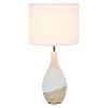 Simultaneously traditional and contemporary, this lovely 19" table lamp morphs into the perfect accent lamp for your home. A traditional shape with a light wooden pattern printed diagonally along the white ceramic base, you’ve found the ideal decorative light to add to your home. A white fabric drum shade completes the look your guests will love!