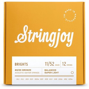 The Stringjoy Brights 12-string 80/20 bronze acoustic guitar strings were crafted for musicians seeking rich, full tones. 'll experience warm, resonant sounds with crisp highs and balanced lows as strum chords or pluck melodies. Made of high-quality, all-American materials and handwound to perfection, each string delivers consistent tone and intonation. Stringjoy's rigorous quality control process ensures receive a flawless set of strings with unparalleled durability. Whether play folk, rock or country, the Stringjoy Brights 12-string set will make acoustic guitar sing.