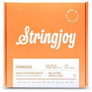 The Stringjoy Foxwoods coated phosphor bronze 12-string acoustic guitar strings deliver a rich tone and provide extra protection for 12-string acoustic guitar. With light gauges that balance playability and clarity, these strings let express every nuance of fingerpicking style. Their phosphor bronze winding and steel core produce a warm, balanced sound with clear highs and tight bass. And thanks to their special coating, these strings resist the corrosive effects of sweat and grime to keep tone crisp and prevent premature string breakage, even during marathon jam sessions in humid conditions.