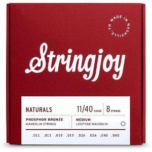 The Stringjoy Naturals phosphor bronze mandolin .011-.040 strings give a rich, balanced tone perfect for any style. Made of high-quality phosphor bronze, these strings feel natural under fingertips, unlike coated strings that can slip during intricate passages. 'll love their familiar, uncoated texture and how they seem tailored just for . Not only do they sound amazing, but they're also built to withstand constant use and retain their tone. Whether practicing craft at home or performing on stage, these strings deliver the performance and reliability demand. Experience the difference handcrafted strings make - these Naturals are made for musicians by musicians.