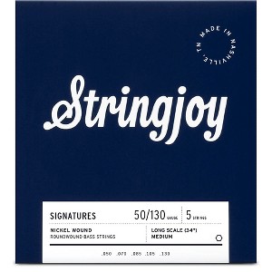 The Stringjoy Signatures 5-string long-scale nickel eound bass guitar strings are made for serious bassists seeking premium tone and playability. 'll appreciate the full, balanced sound and comfortable feel as fly up and down the fingerboard. Made in small batches in Nashville from high-quality materials, these roundwound strings are built to handle the demands of any genre while standing up to regular use and frequent tuning adjustments. The nickel-plated steel wrap and hexagonal core provide a natural tone without the muddiness of coated strings. Whether prefer a lighter gauge for speedy slapping or a heavier bottom end for rumbling lows, Stringjoy has a set perfectly suited to playing style. Designed by bass players for bass players, these strings are made to inspire.