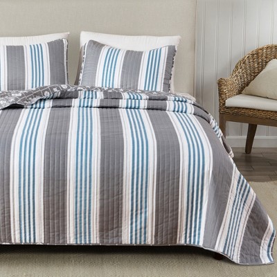 Striped Coastal Reversible Cotton Quilt Set - Great Bay Home