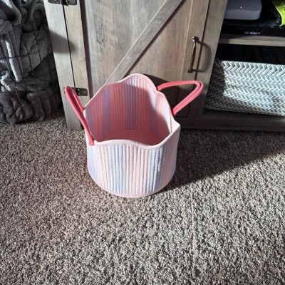 [This review was collected as part of a promotion.] I purchased this pink and purple, one size, coiled rope storage basket to use in the kiddos rooms. I policed up the blue one as well because I really thought the price was very reasonable especially fo the quality and value of how these basket were made. Very durable and sewn together well. I anticipate having these baskets for many Easter holidays to come!