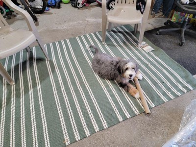 A: The rug can be cleaned by hosing it with water, ensuring easy maintenance.