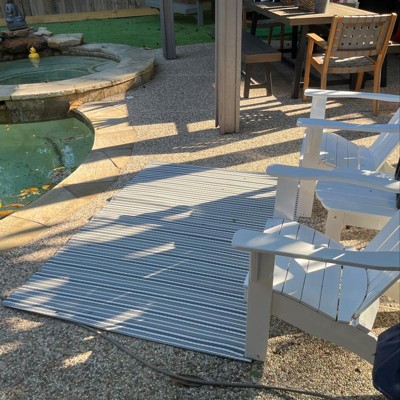 A: The rug is made from fade- and weather-resistant recycled polyester.