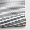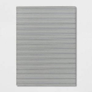 A: The rug features a striped design that adds a classic touch to various decor styles.
