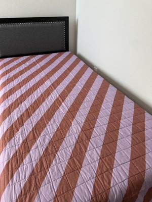 Bring timeless style to your child’s bedroom with this Striped Quilt from Pillowfort™. This microfiber quilt is made from 100% recycled polyester with recycled polyester lining and polyester-rayon blend filling to provide year-round, cozy warmth. It showcases a purple-and-brown striped design with a stylish stitching pattern that adds a decorative touch to the top of the bed. Plus, the machine-washable construction allows for hassle-free cleaning.