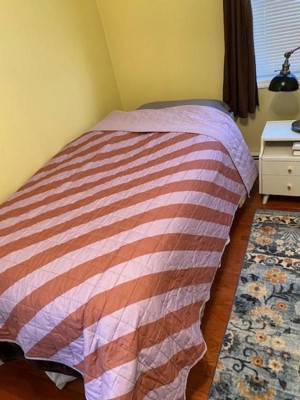 The purple and brown stripes on this quilt look absolutely beautiful! I love the color combination—it’s unique, and the two-tone stripes give it a modern vibe that works great for a kid’s room. It’s lightweight, so my daughter can easily spread it out on the bed by herself. Plus, it’s soft to the touch and feels really comfortable. Taking care of it is super easy—just toss it in the washing machine, and it comes out looking fresh!