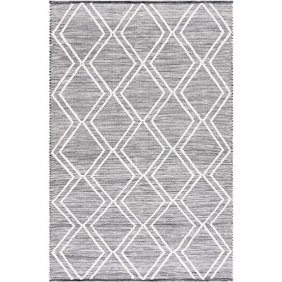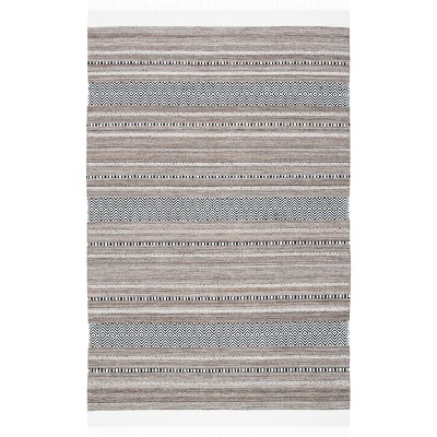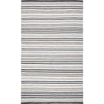Striped Kilim STK101 Hand Woven Area Rug - Black/Ivory - 5'x8' - Safavieh.
